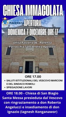 7 Dicembre: Apertura Chiesa Immacolata – Pollenza