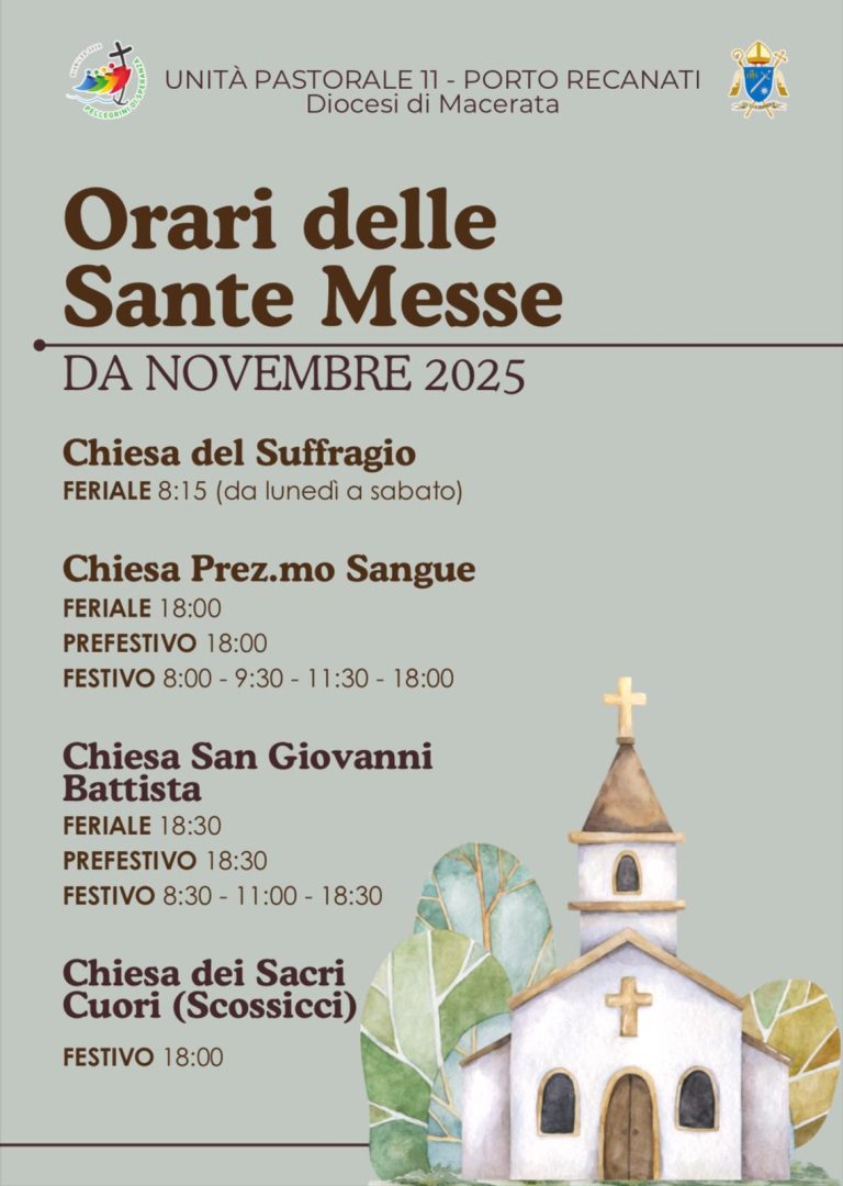 Nuovi orari per le Sante Messe da Novembre per l’unità pastorale di Porto Recanati