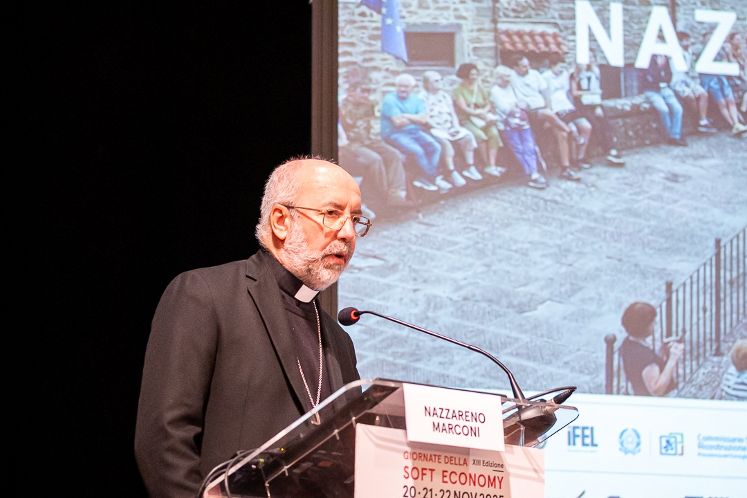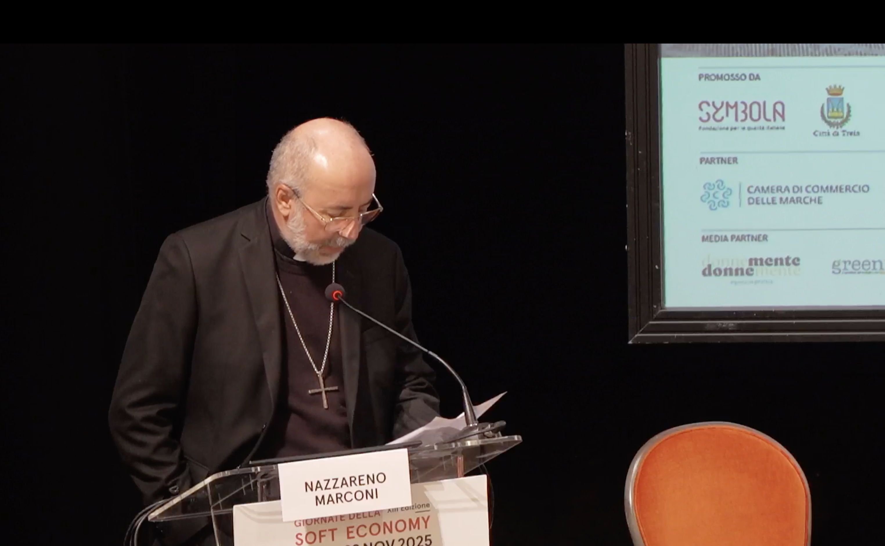 Neopopolazione e neocultura a confronto nella riflessione di mons. Nazzareno Marconi a Symbola. Il vescovo di Macerata e presidente della Conferenza Episcopale Marchigiana è intervenuto a Treia durante la XIII edizione del festival della Soft Economy.