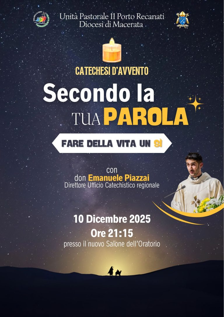 10 Dicembre: Catechesi di Avvento presso il nuovo salone dell’oratorio alle 21:15 – Porto Recanati