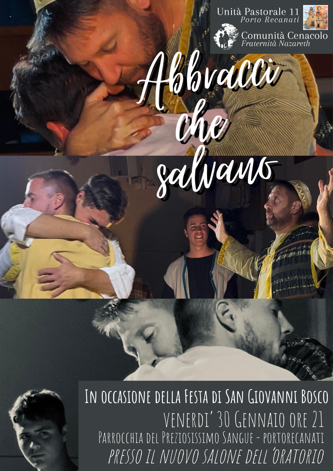 Venerdì 30 Gennaio: “Abbracci che salvano” alle ore 21:00 presso il nuovo salone dell’oratorio della Parrocchia del Preziosissimo Sangue – Porto Recanati