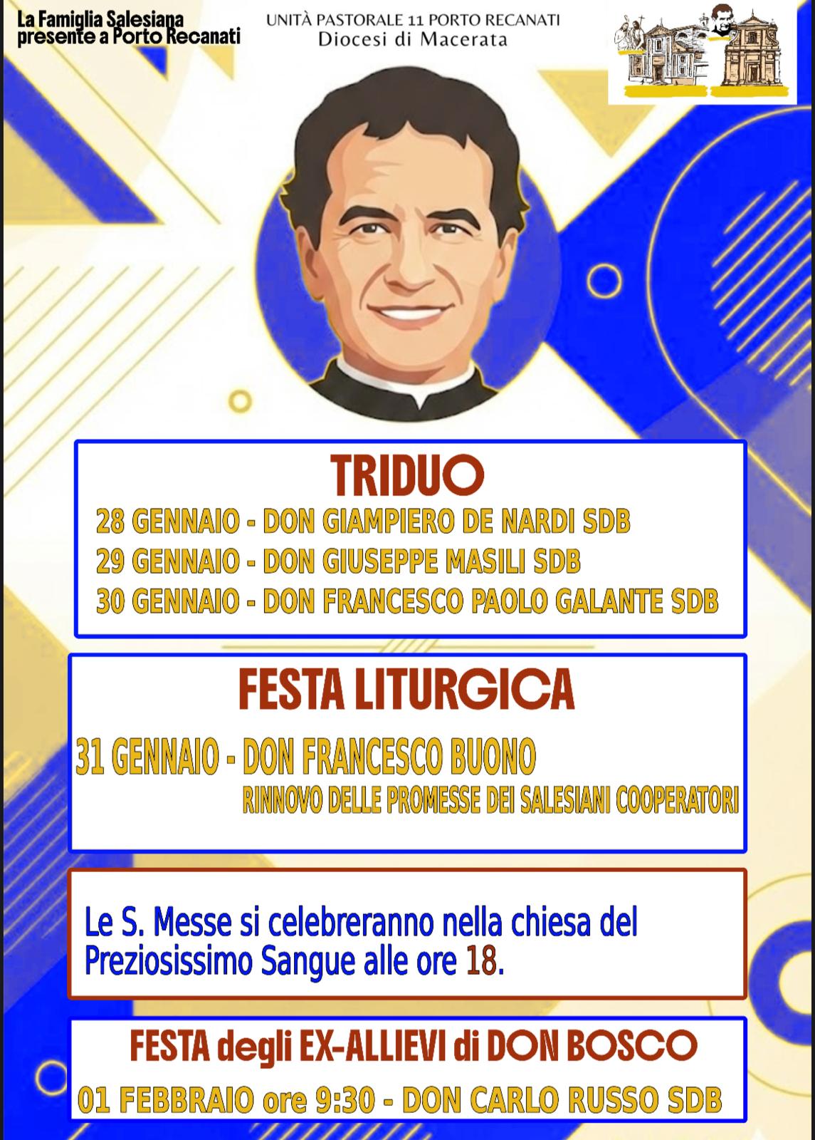 23 Gennaio 2026Dal 28 Gennaio al 1 Febbraio: Festa di San Giovanni Bosco – Porto Recanati Dal 28 Gennaio al 1 Febbraio: Festa di San Giovanni Bosco – Porto Recanati condividi su