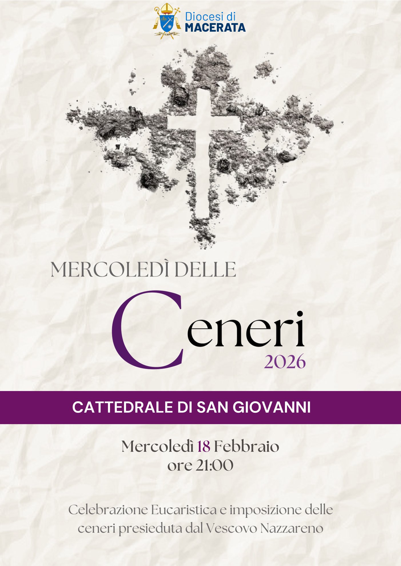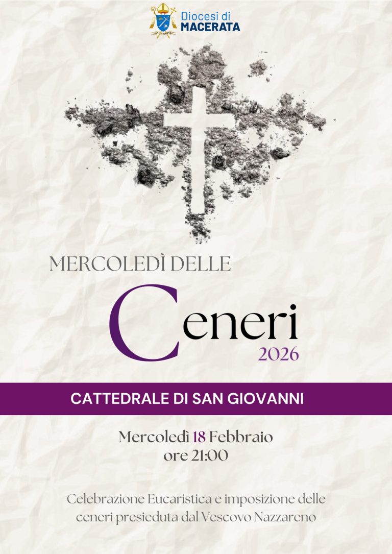 27 Gennaio 202618 Febbraio: Mercoledì delle Ceneri – Cattedrale di San Giovanni 18 Febbraio: Celebrazione Eucaristica del Mercoledì delle Ceneri presieduta da S.E. Mons. Nazzareno Marconi alle ore 21:00 presso la Cattedrale di San Giovanni – Macerata condividi su 2026 Mercoledì delle Ceneri