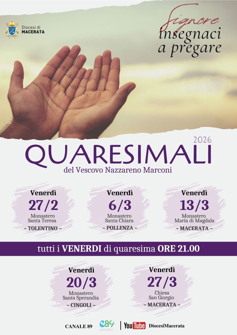 27 Gennaio 202627 Gennaio 2026Quaresimali 2026: “Signore insegnaci a pregare” Quaresimali di S.E. Mons. Nazzareno Marconi tutti i venerdì di Quaresima alle ore 21:00. condividi su Quaresimali 2026