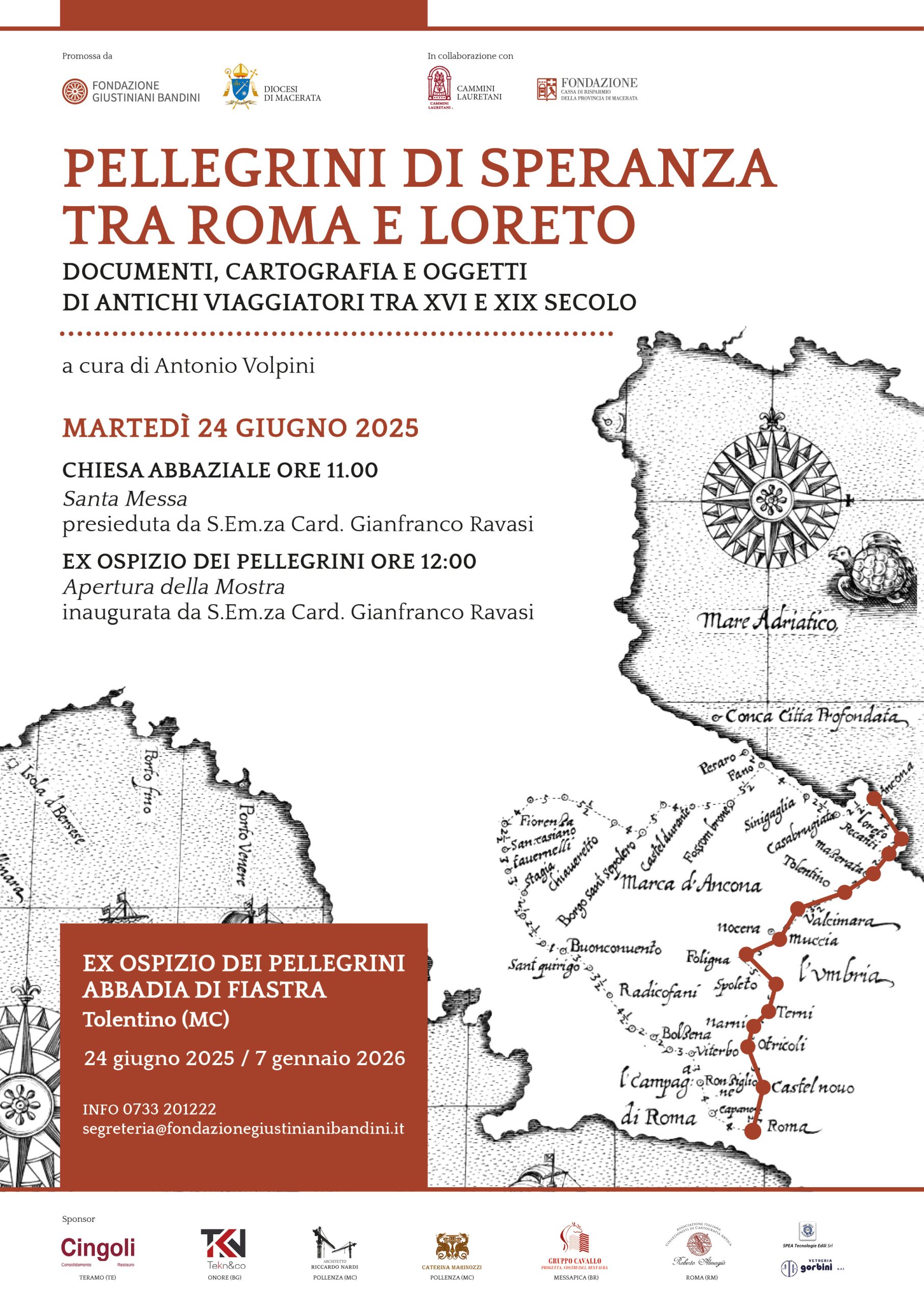Martedì 24 giugno 2025, alle ore 12:00, presso l’Ex Ospizio dei Pellegrini dell’Abbadia di Fiastra, sarà inaugurata la mostra “Pellegrini di Speranza tra Roma e Loreto”. All’evento interverranno S.Em.za Card. Gianfranco Ravasi e il Sen. Guido Castelli, Commissario Straordinario Sisma 2016.