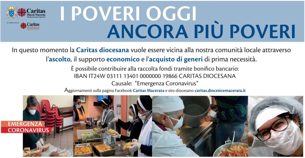 In questo momento la Caritas diocesana vuole essere vicina alla nostra comunità locale attraverso l’ascolto, il supporto economico e l’acquisto di generi di prima necessità.