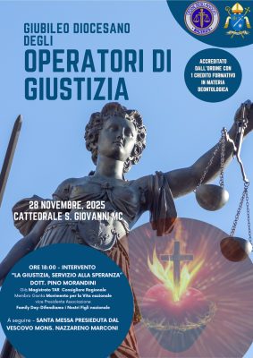28 Novembre: Giubileo diocesano degli operatori di giustizia alle ore 18:00 e a seguire la Santa Messa presieduta da S.E. Mons. Nazzareno Marconi presso la Cattedrale di San Giovanni – Macerata